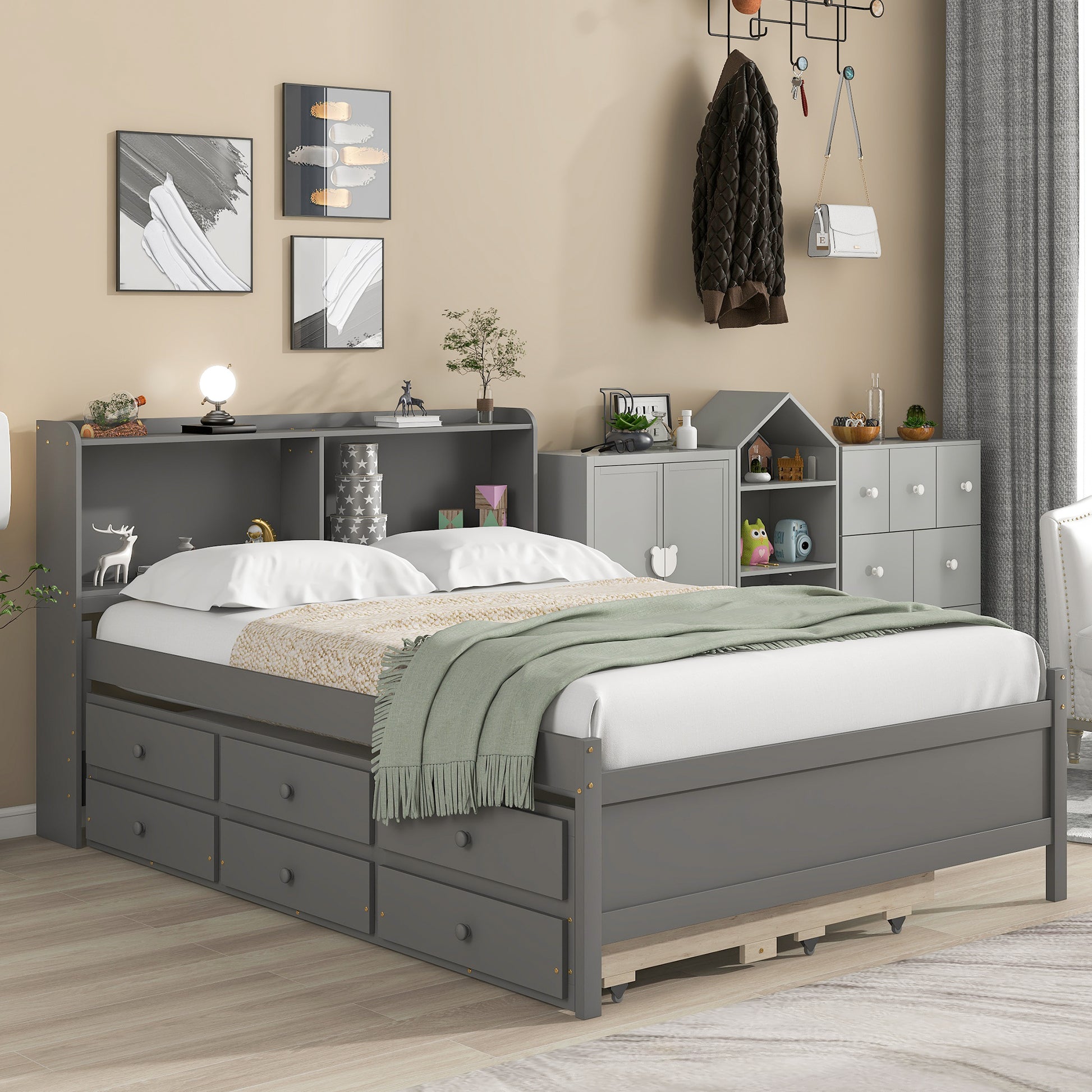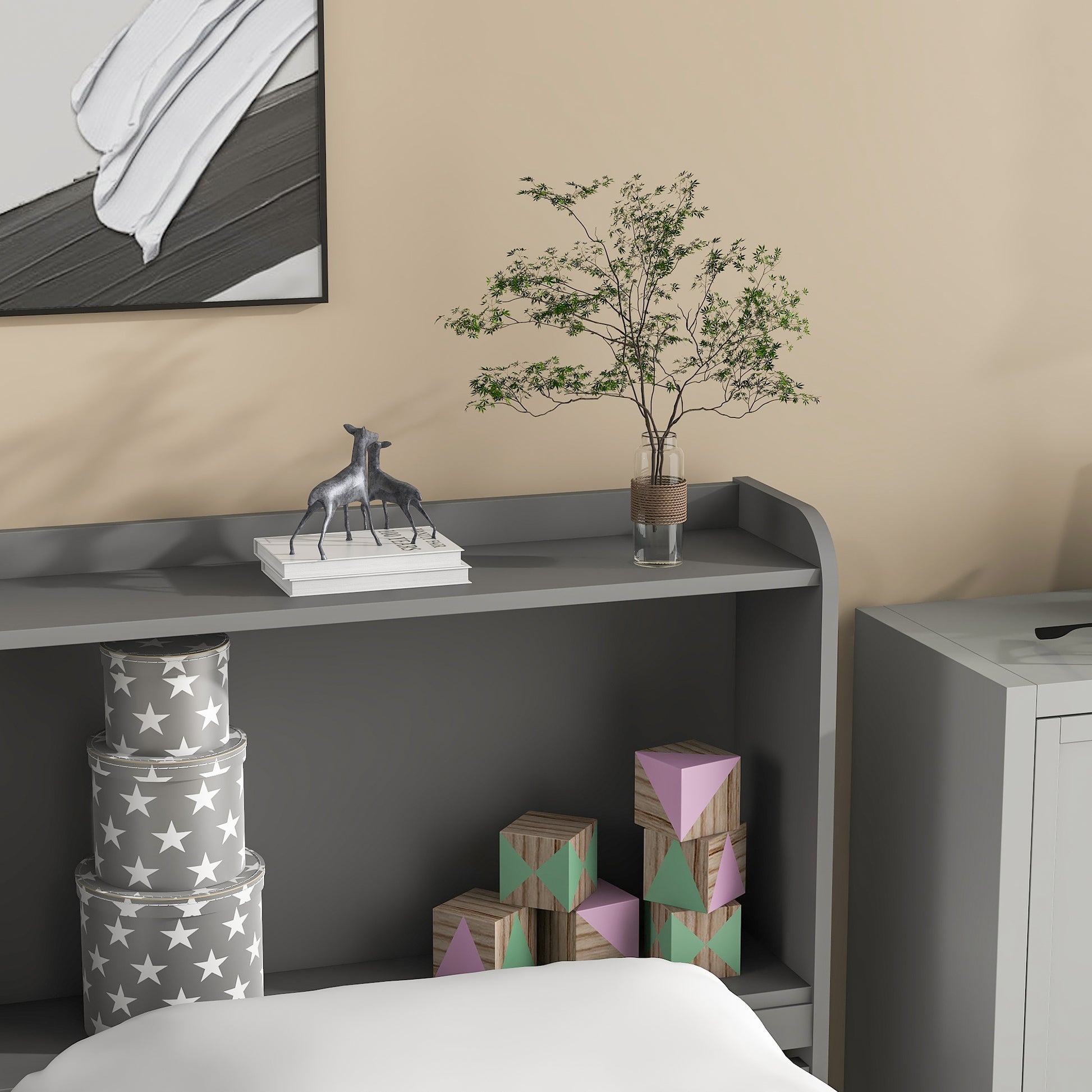 If you are wondering how to maximize your limited room space, this full size bed with bookcase, trundle and storage drawers is the perfect solution for every home. The space-optimizing design will unleash your bedroom’s true space potential and opens up more room for the addition of other furniture and décor. Moreover, the bookcase integrated within the headboard provides ample storage area to keep your room neat and concise. In addition, this twin bed comes in a contemporary and minimalistic-style appearance, making this bed an outstanding centrepiece to any bedroom.