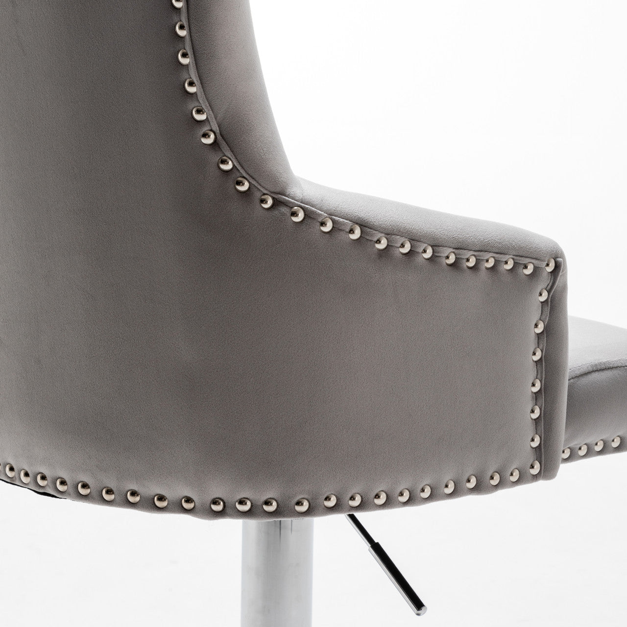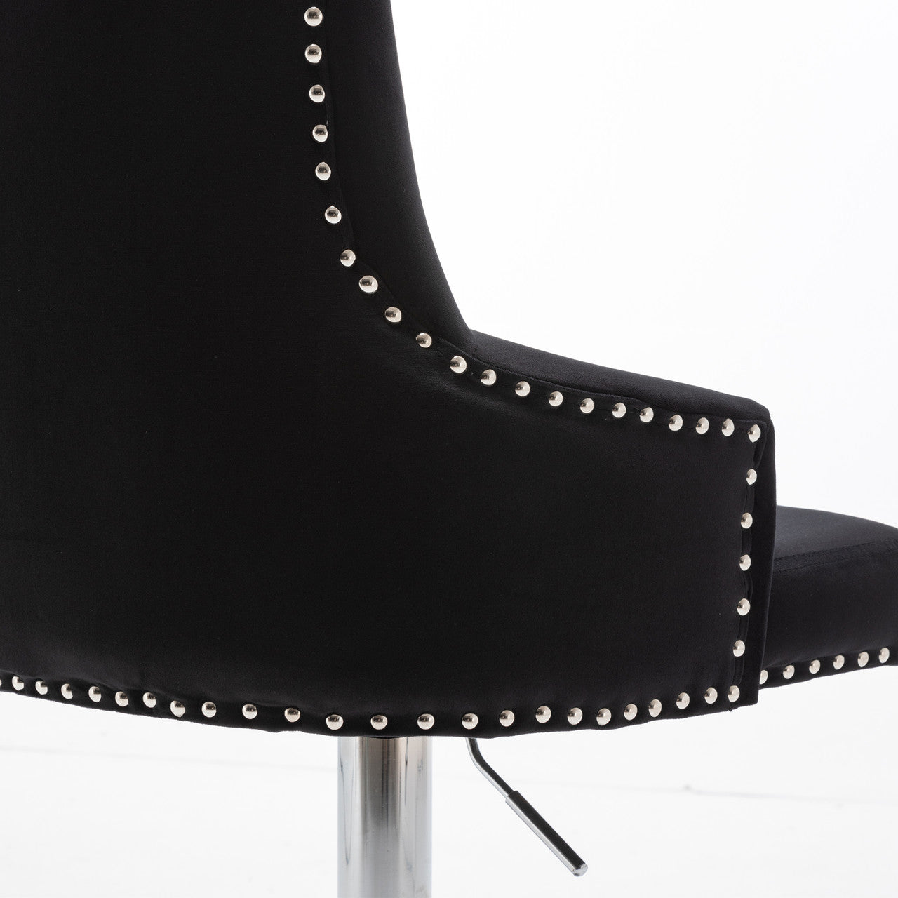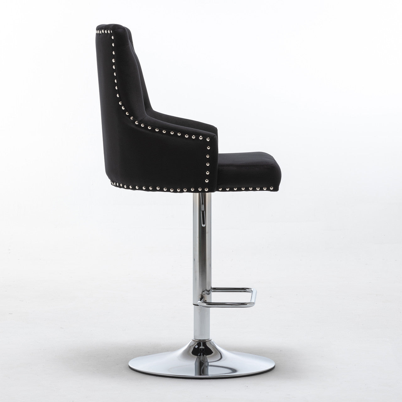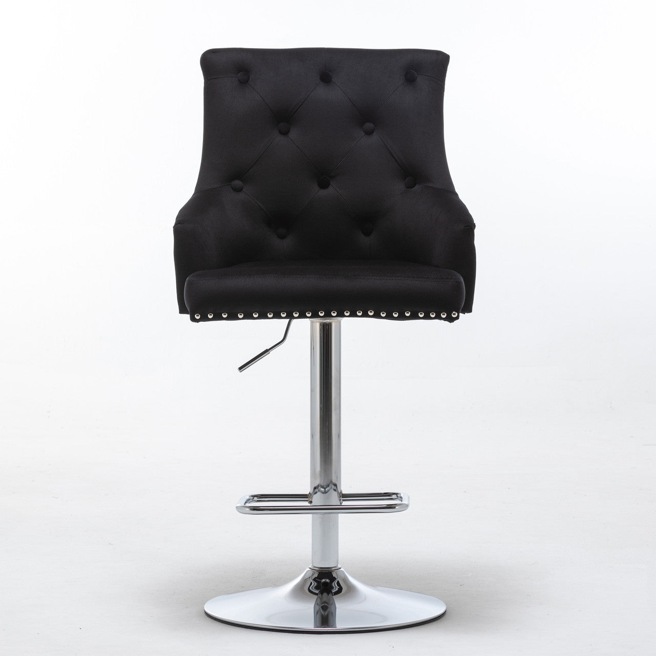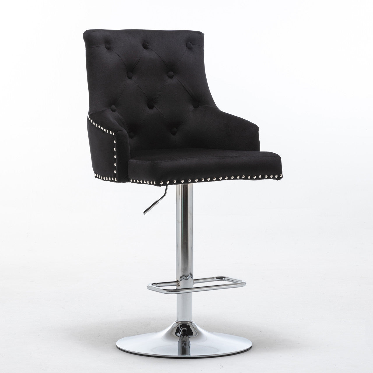 - Premium Fabric: The counter stool is upholstered by skin-touch velvet, detailed with the tufted button and nail-head trim, which creates a noble mood for the surrounding.