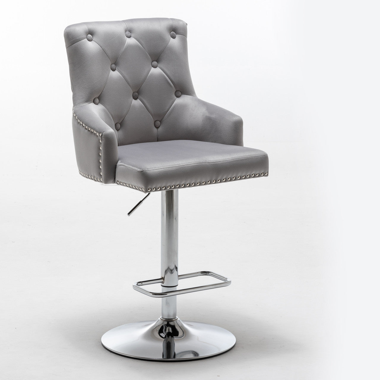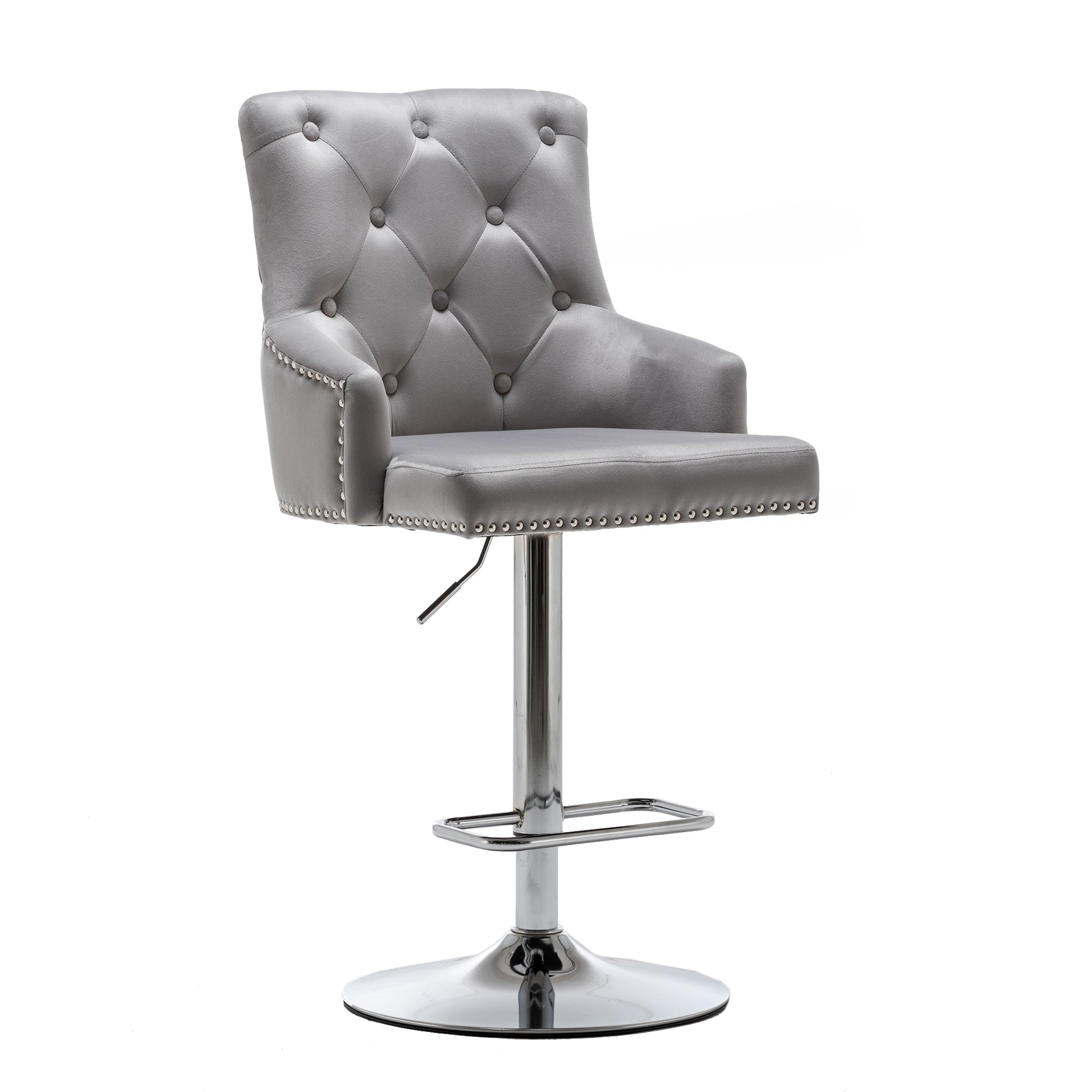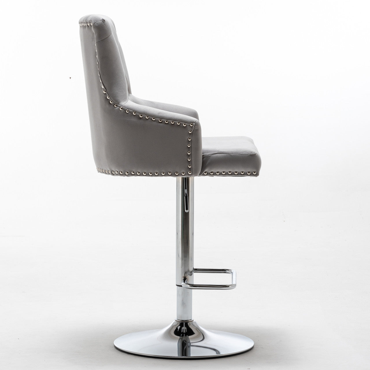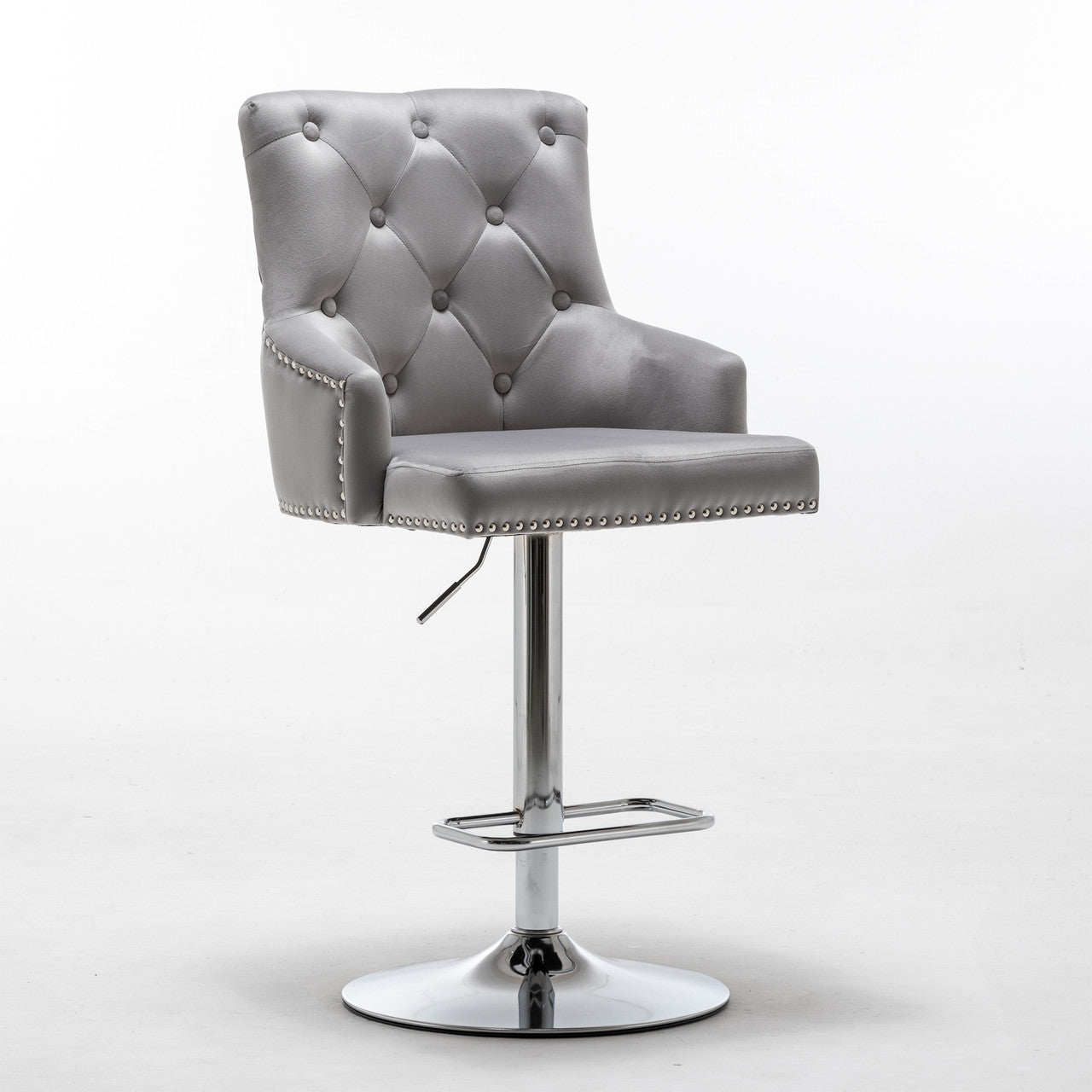 - Premium Fabric: The counter stool is upholstered by skin-touch velvet, detailed with the tufted button and nail-head trim, which creates a noble mood for the surrounding.