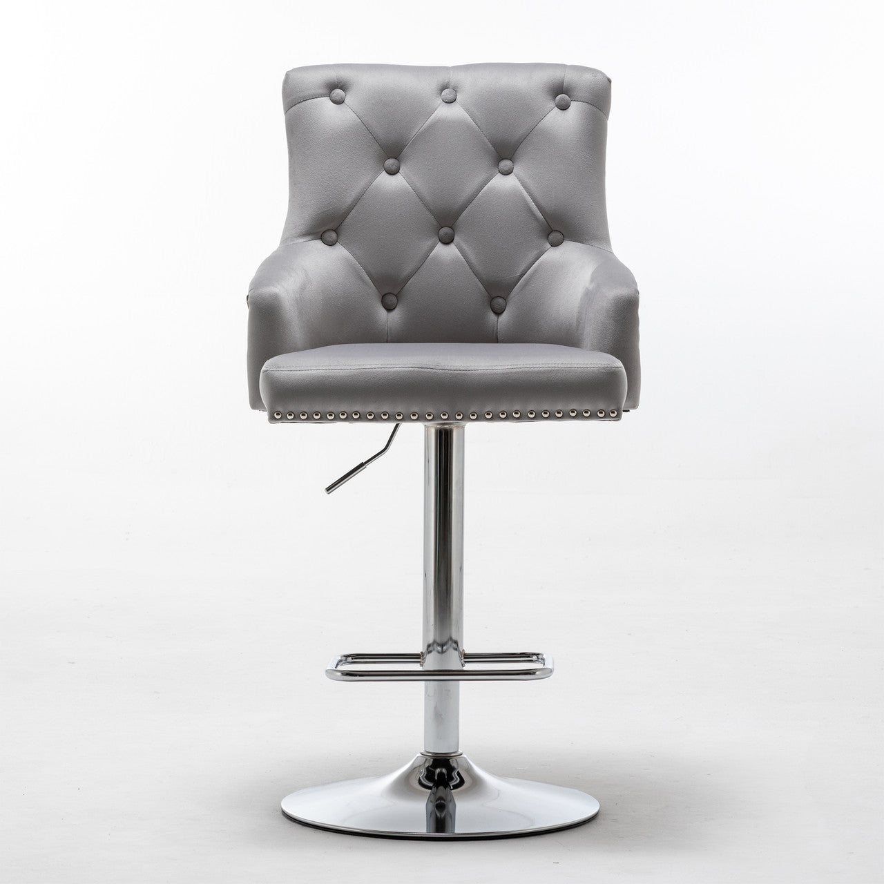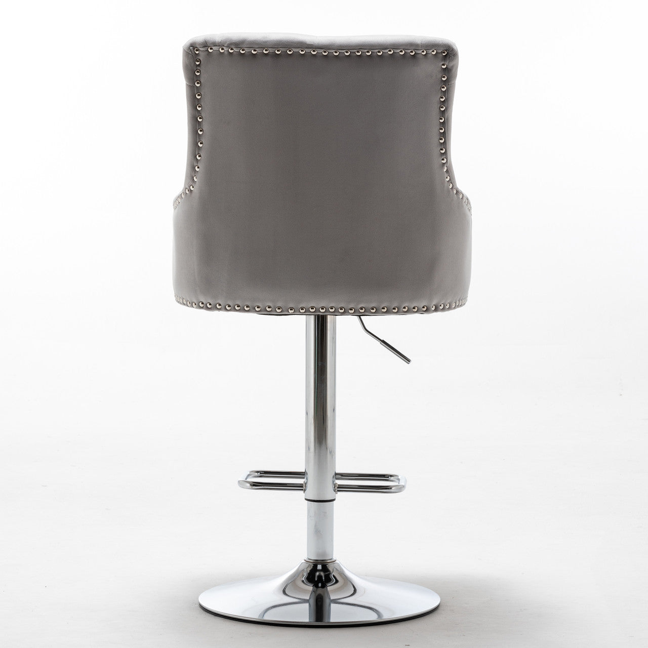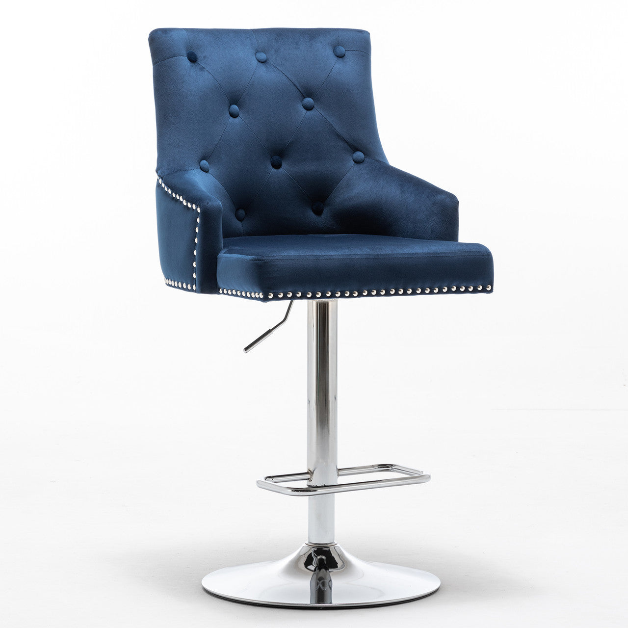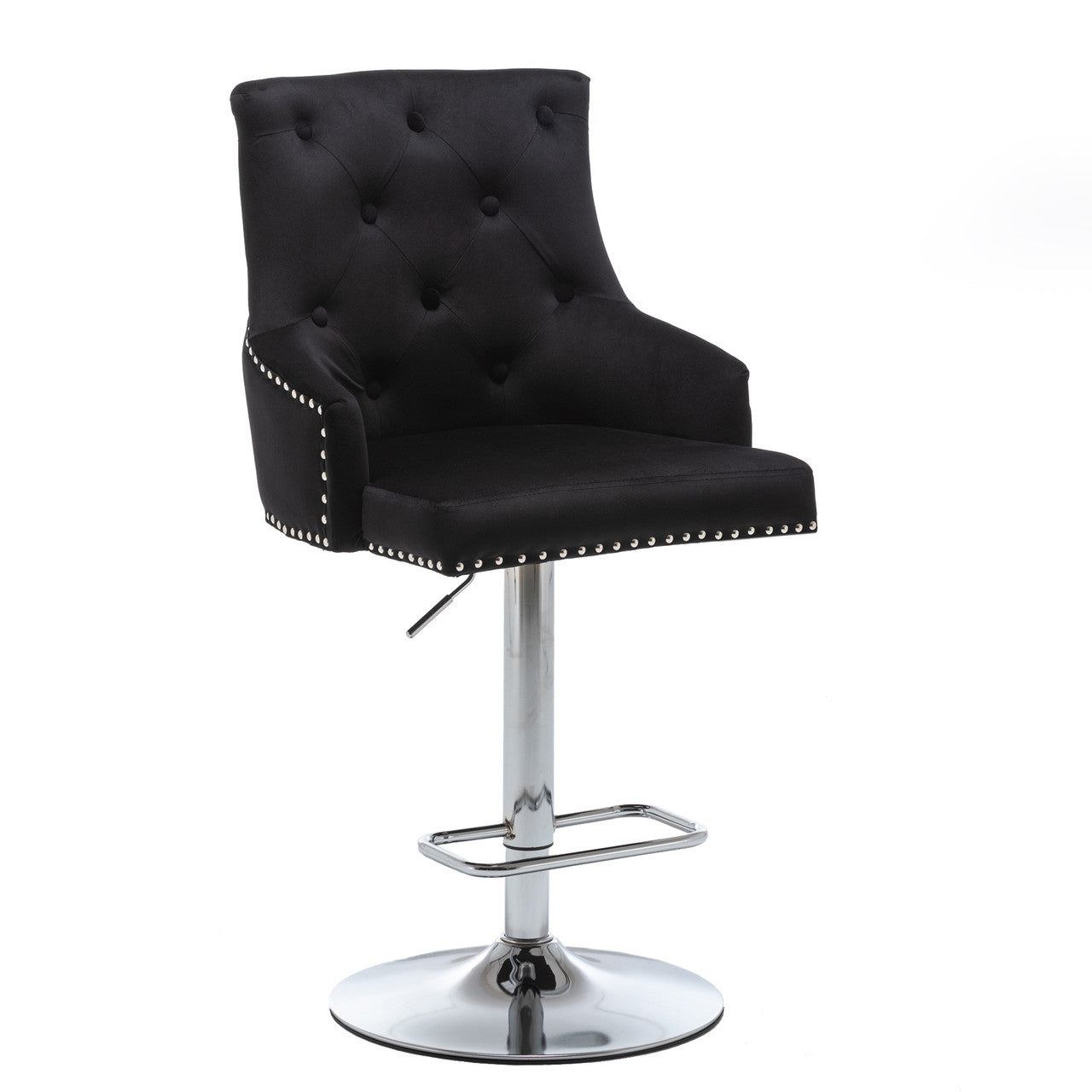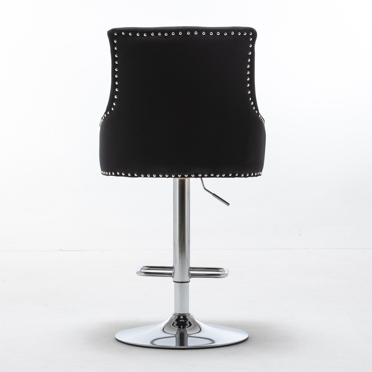 - Premium Fabric: The counter stool is upholstered by skin-touch velvet, detailed with the tufted button and nail-head trim, which creates a noble mood for the surrounding.