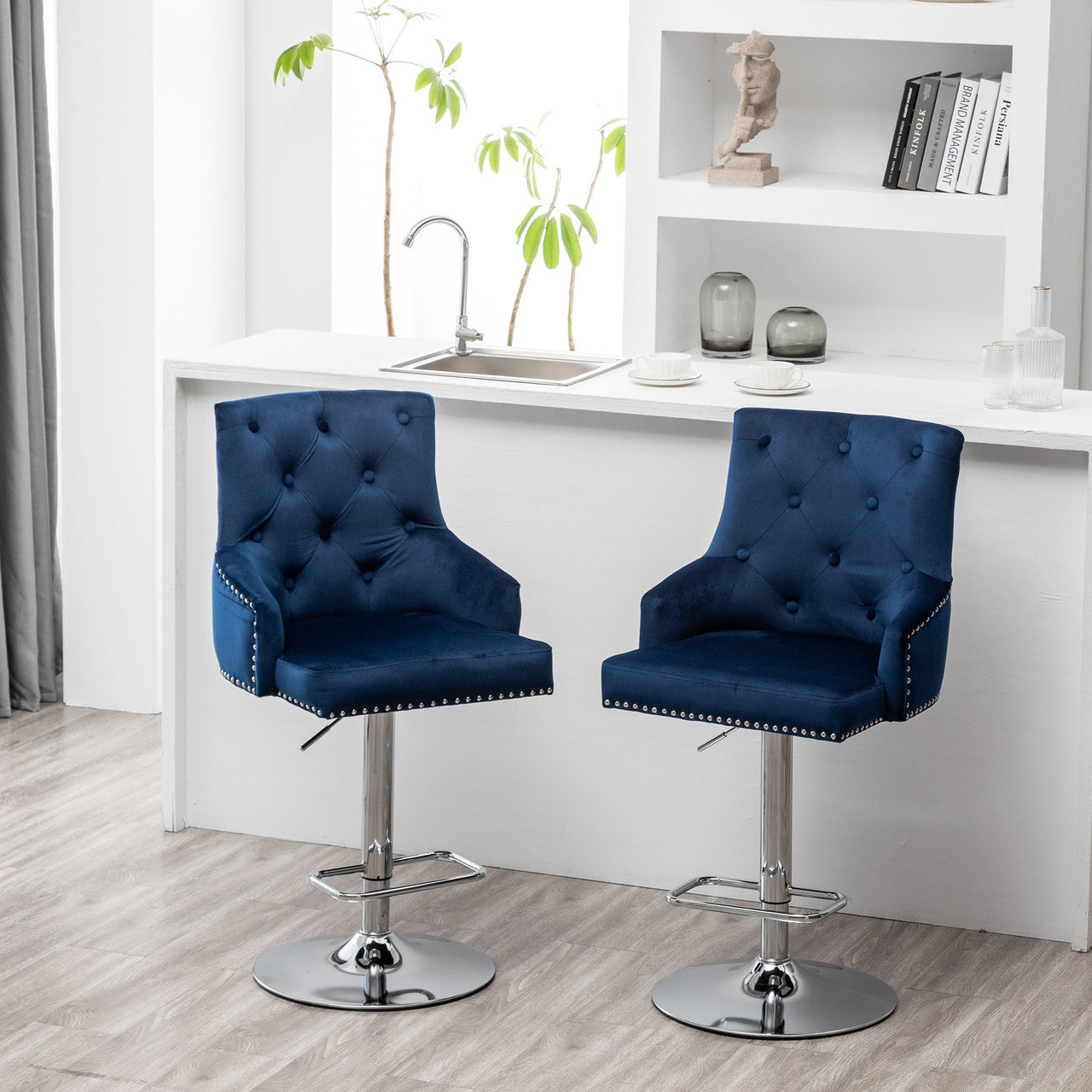 Go Green Woods Monroe Velvet Tufted Swivel Bar Stool Set of 2