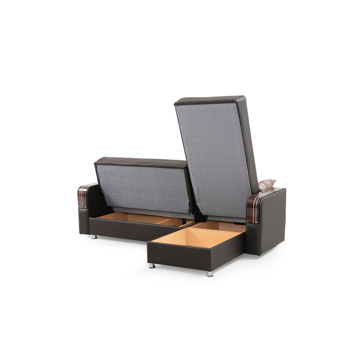 - Elegant and striking modern Brown leather upholstered L-shaped sectional sofa with storage